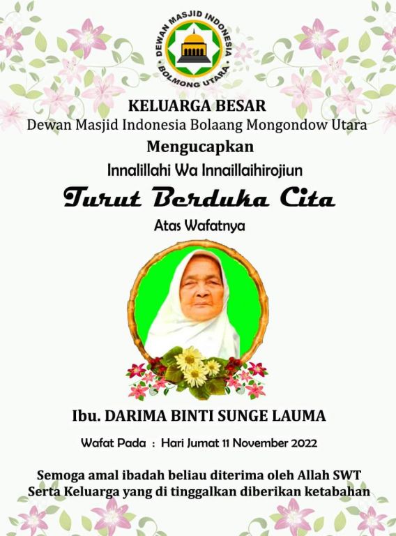 TURUT BERDUKA CITA ATAS MENINGGALNYA IBUNDA KETUA DMI KABUPATEN BOLAANG MONGONDOW UTARA