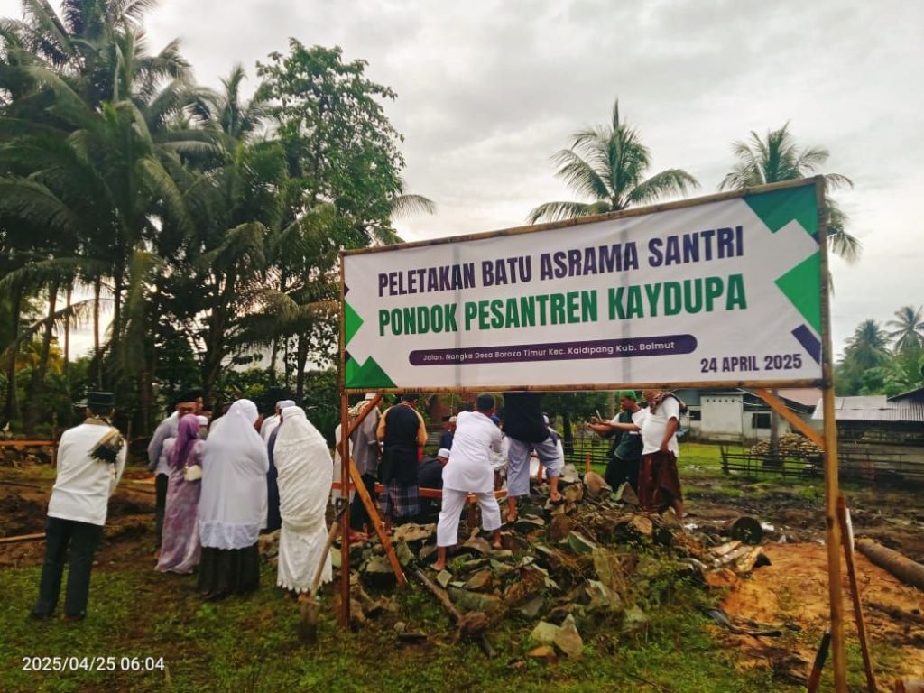 BOROKO, 26 Syawal 1446 H/25 April 2025 — Dalam rangka mendukung pengembangan fasilitas pendidikan dan meningkatkan kenyamanan bagi santri, Pondok Pesantren Kaidupa Bolaang Mongondow Utara menggelar acara peletakan batu pertama pembangunan asrama baru pada hari ini. Acara ini dihadiri oleh sejumlah tokoh penting, baik dari kalangan internal pesantren maupun pemerintah Daerah.