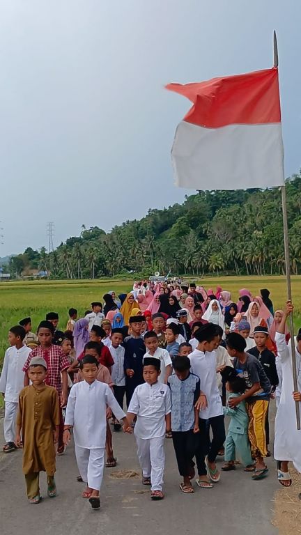 Talaga Tomoagu, 11 Rabiul Awal 1447 H / 4 September 2025 – Dalam rangka menyambut Maulid Nabi Muhammad SAW 1447 H, Badan Kesejahteraan Masjid (BKM) Nurul Iman Desa Talaga Tomoagu menggelar kegiatan Parade Palelat dengan mengangkat tema “Hasil Pertanian sebagai Wujud Syukur atas Nikmat Allah SWT”, Kamis (4/9/2025) Parade Palelat ini menjadi agenda dinantikan masyarakat. Beragam hasil pertanian seperti jagung, sayur-mayur, buah-buahan, hingga hasil kebun lainnya ditata dan dipajang dengan indah sebagai simbol syukur atas limpahan rezeki dari Allah SWT. Ketua BKM Nurul Iman menyampaikan bahwa peringatan Maulid Nabi bukan sekadar seremonial, tetapi momentum untuk meneladani akhlak Rasulullah SAW. “Dengan parade hasil pertanian ini, kita ingin menegaskan bahwa masyarakat Desa Talaga Tomoagu sangat bergantung pada pertanian, dan ini adalah anugerah Allah yang patut kita syukuri bersama,” ujarnya. Kegiatan ini diikuti oleh seluruh lapisan masyarakat, mulai dari anak-anak, remaja, hingga orang tua. Suasana kebersamaan dan kekeluargaan tampak jelas, ditandai dengan antusiasme warga yang memadati halaman masjid serta jalur parade. Selain parade, acara juga dirangkaikan dengan pembacaan maulid barzanji Dengan adanya kegiatan ini, BKM Nurul Iman berharap semangat Maulid Nabi SAW terus tertanam dalam diri setiap jamaah dan masyarakat, serta mampu memperkuat ukhuwah Islamiyah dan kepedulian sosial di Desa Talaga Tomoagu.
